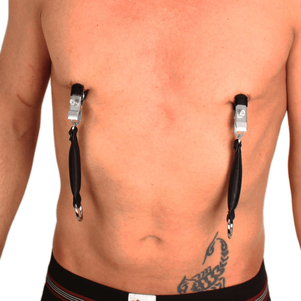 Breast Clamp with Leather Weight to wysokiej jakości akcesoria BDSM, stworzone z myślą o precyzyjnej stymulacji i przyjemnym uczuciu ciągnięcia. Każda klamra wyposażona jest w skórzaną obciążoną końcówkę o wadze 80 g, która delikatnie naciąga brodawkę, zapewniając intensywne, przyjemne doznania dla osoby uległej.