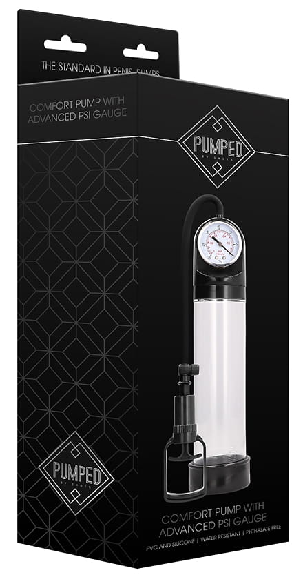 Prezentujemy pompkę do penisa z manometrem od marki Pumped w wygodnej wersji Comfort Pump. Dzięki transparentnemu cylinderowi o długości 21 cm i średnicy 6 cm, oraz dodatkowymi funkcjami, taka pompka jest idealnym rozwiązaniem dla mężczyzn pragnących poprawić swoje doznania seksualne i zwiększyć rozmiar.