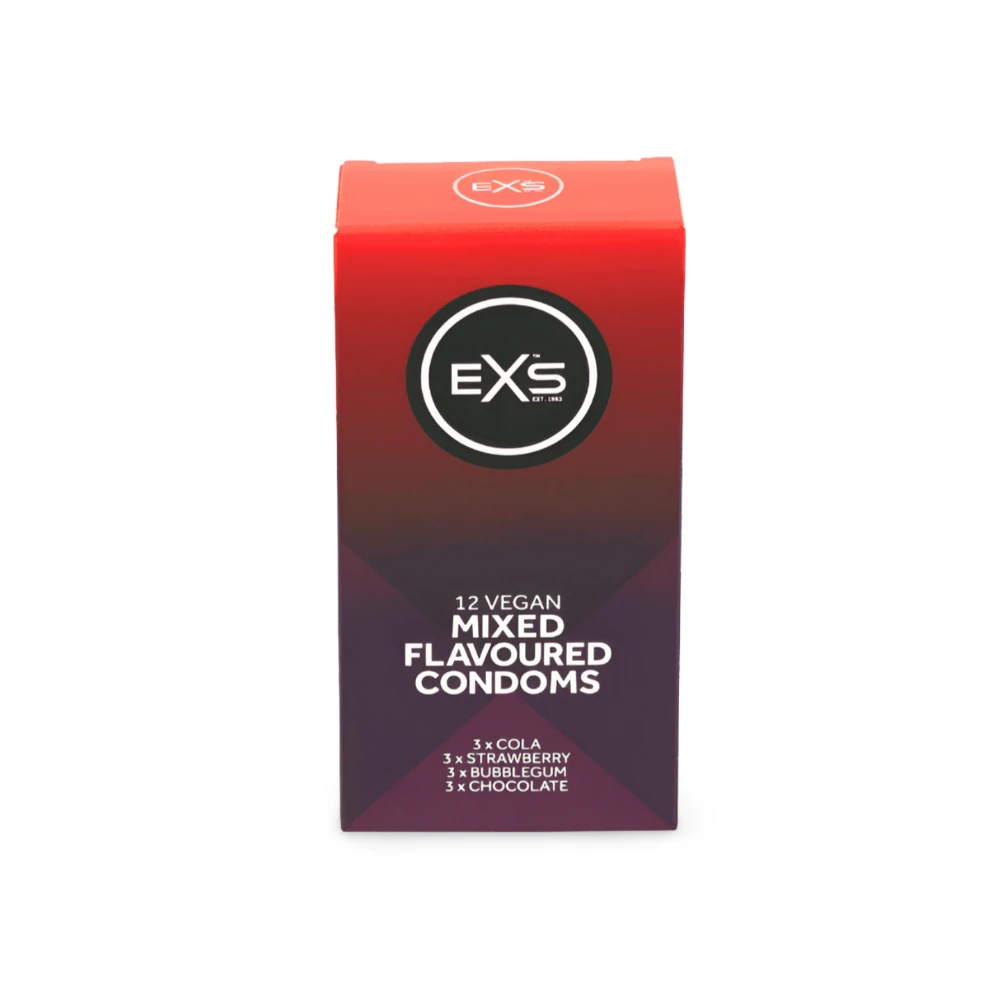 EXS Mixed Flavoured to prezerwatywy stworzone z myślą o dodaniu zabawy i nowych doznań do gry wstępnej oraz seksu oralnego. Dostępne w różnych smakach – Cola, Czekolada, Truskawkowy Sundae i Guma balonowa – te prezerwatywy wprowadzają pikanterię do Waszego życia seksualnego.