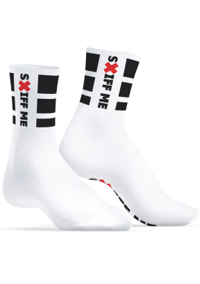 Białe skarpety z napisem "SNIFF ME" to doskonały sposób na wyrażenie swojego stylu.