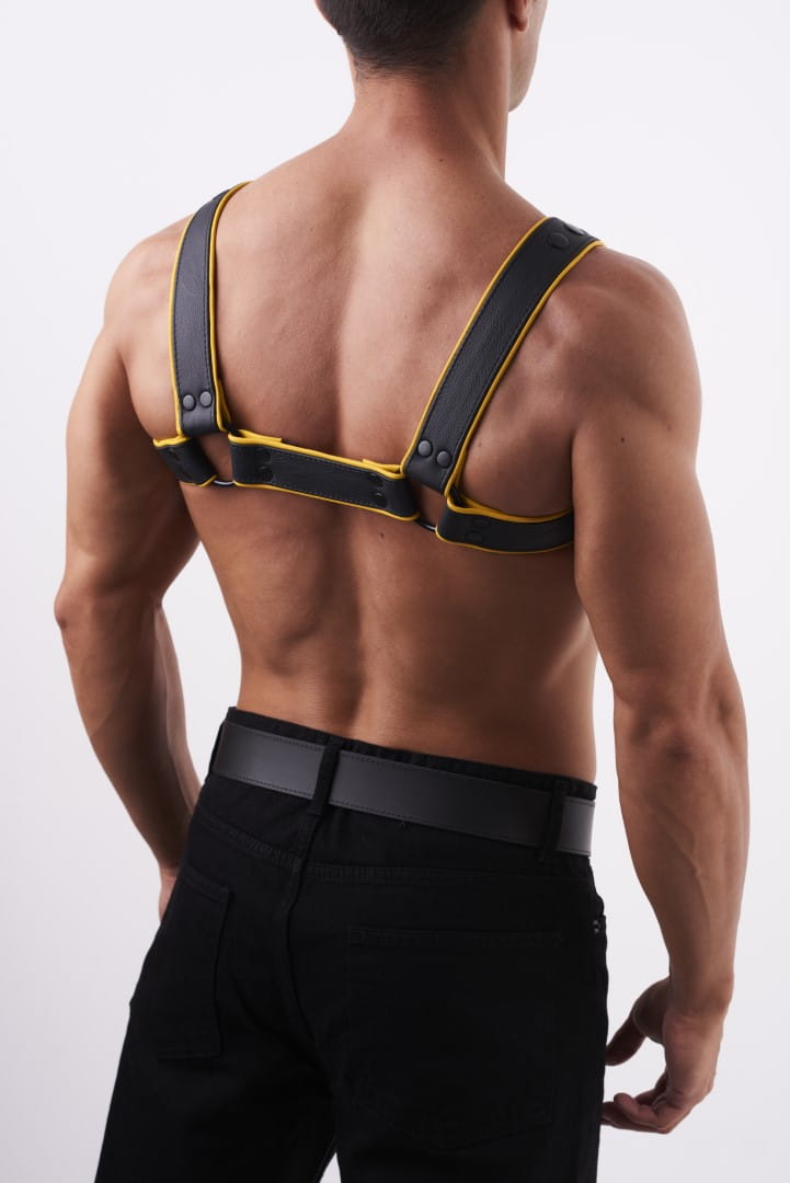 Soft Leather Chest Harness Yellow – intensywny kolor, wysoka jakość i maksymalny komfort w jednym. Ta uprząż na klatkę piersiową, wykonana z miękkiej, naturalnej skóry bydlęcej o czterowarstwowej konstrukcji, łączy solidność z luksusowym wykończeniem.
